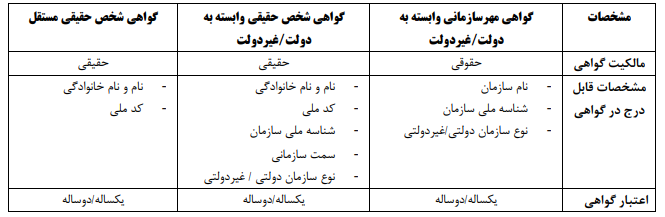 اشخاص حقوقی و حقیقی با توجه به نیاز خود می توانند از انواع گواهی های معرفی شده استفاده نمایند.