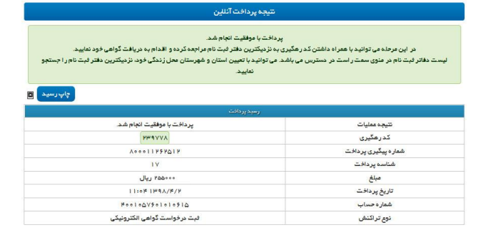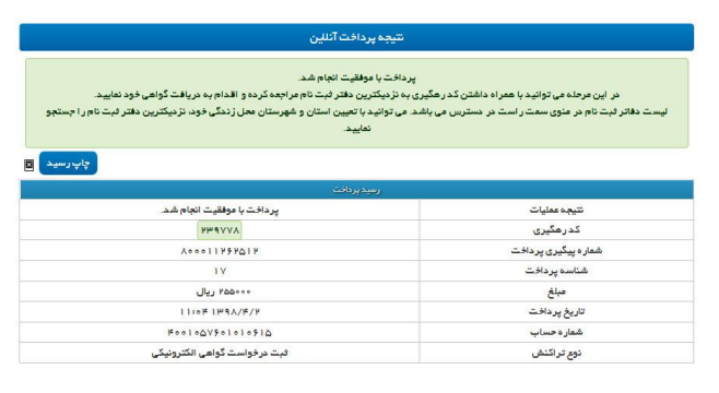 پس از اخذ کد رهگیری به یکی از دفاتر ثبت نام معرفی شده در سامانه جهت صدور گواهی مراجعه فرمایید.