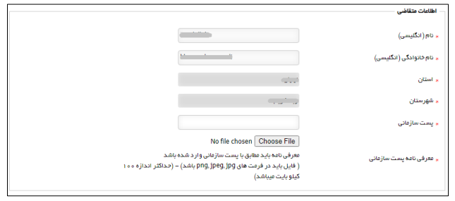 پست سازمانی متقاضی برای درج در گواهی را در این قسمت وارد نمایید(پست سازمانی می توان ید فارسی یا انگلیسی وارد کنید.)