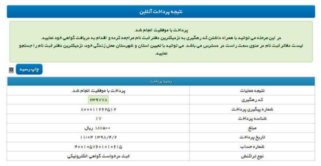 با انتخاب گزینه »پرداخت« وارد صفحه بانکی شده و پرداخت تعرفه را انجام دهید.