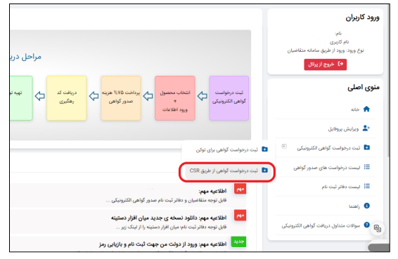 ثبت درخواست گواهی و اخذ کد رهگیری